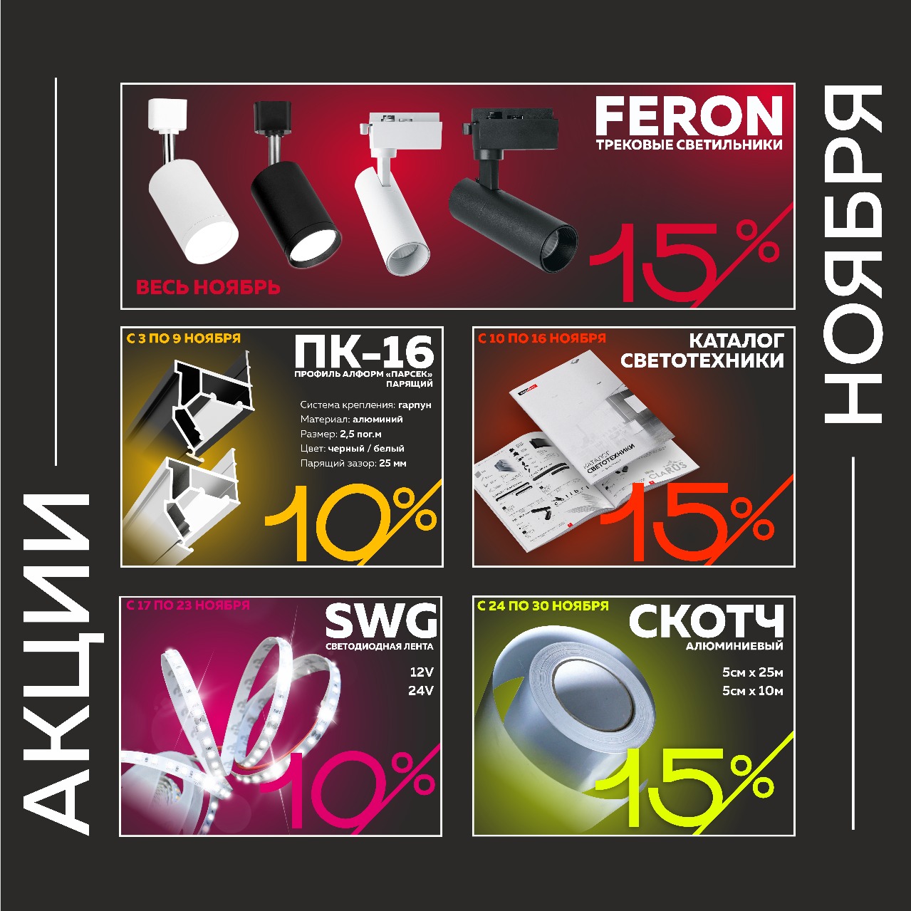 Также мы предлагаем огромный ассортимент профильных систем, комплектующих и светотехники.
